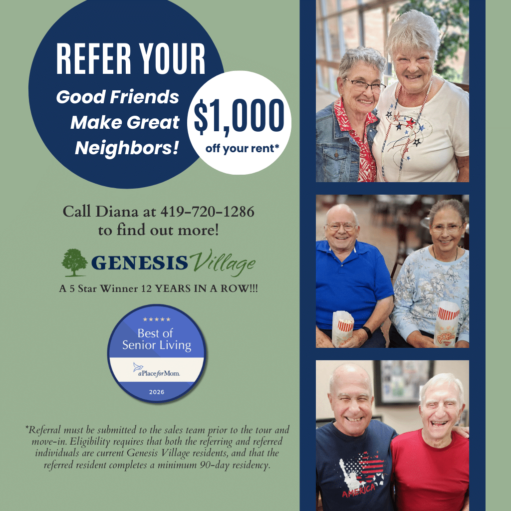At Genesis Village, some of our very best residents come from personal referrals. There’s no better compliment than recommending our community to a friend!