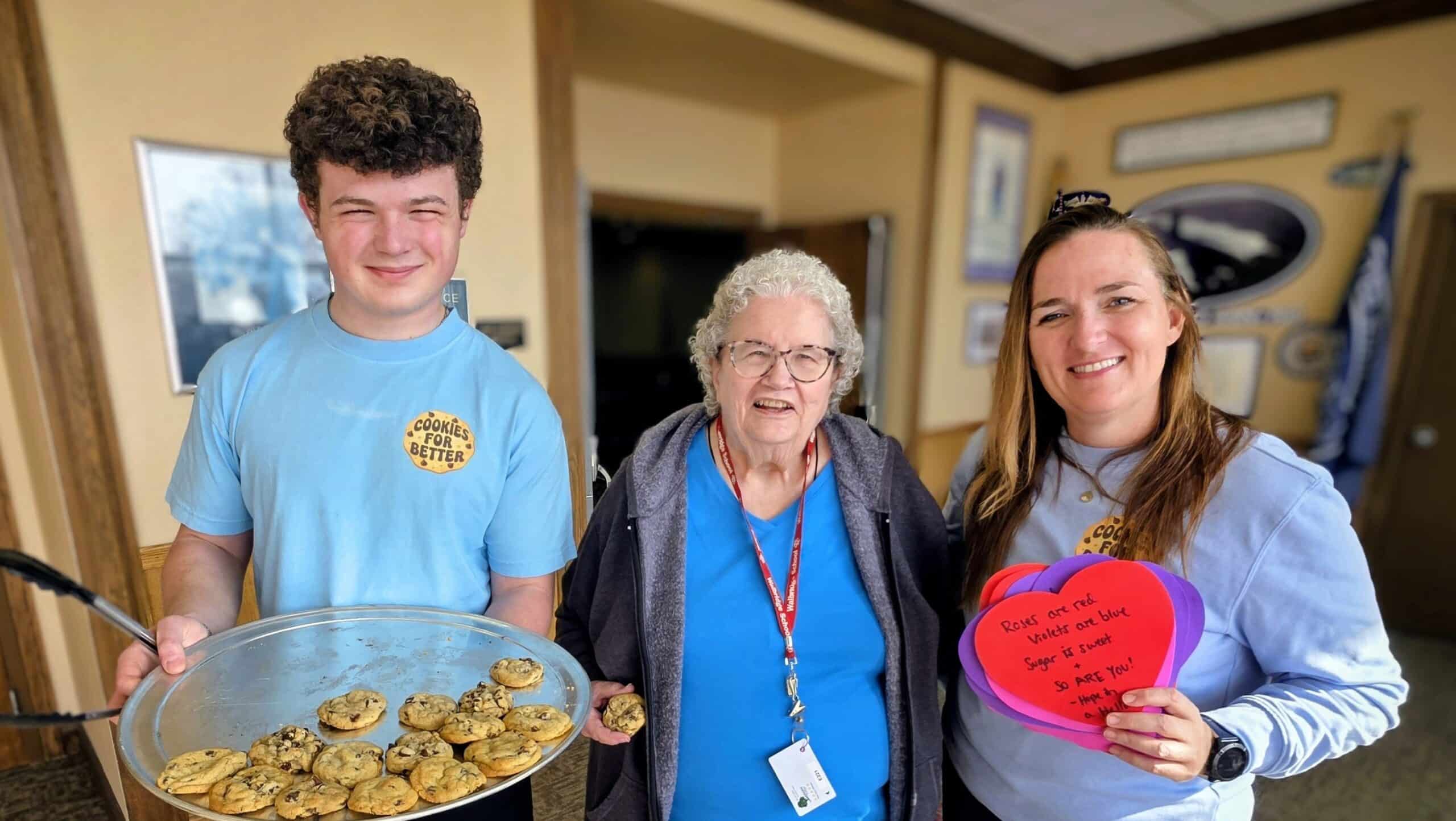 A massive thank you to Cookies for Better and Hope in a Hello for hand-delivering homemade chocolate chip cookies and beautiful Valentines to our residents. The smiles said it all. 🍪💌